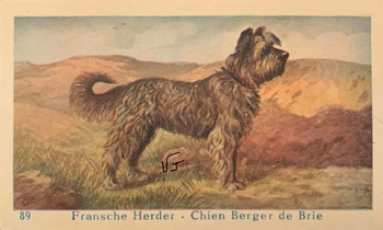En 1885, le 1er briard enregistré au livre des origines se nommait Sans Gêne, c’était un mâle noir appartenant au Prince de Béarn, sous le N°155.